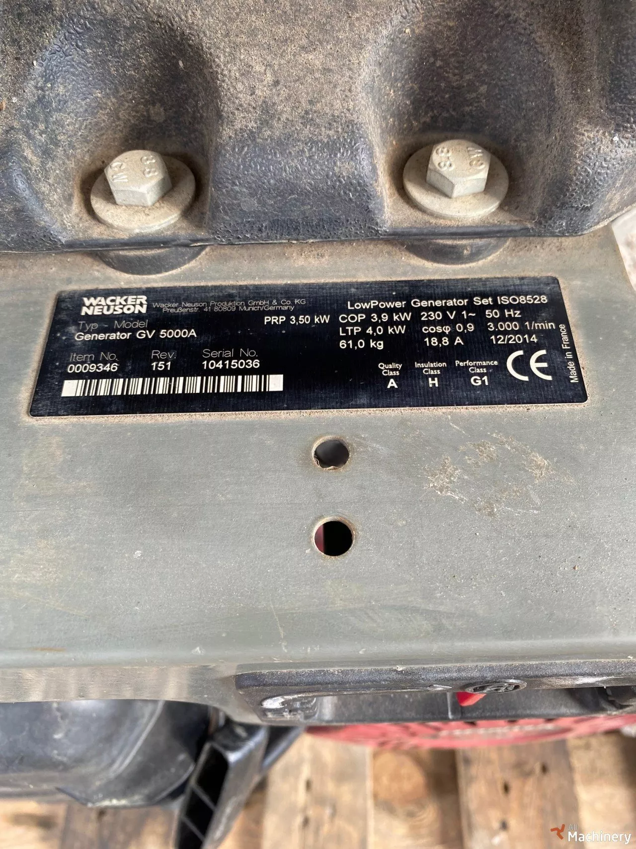Wacker Neuson GV5000A benzininis generatorius Metai: 2015 Galia: 4 kW Variklis: Honda GX 270 Kuro bako talpa: 11 l Veikimo laikas: 7 h