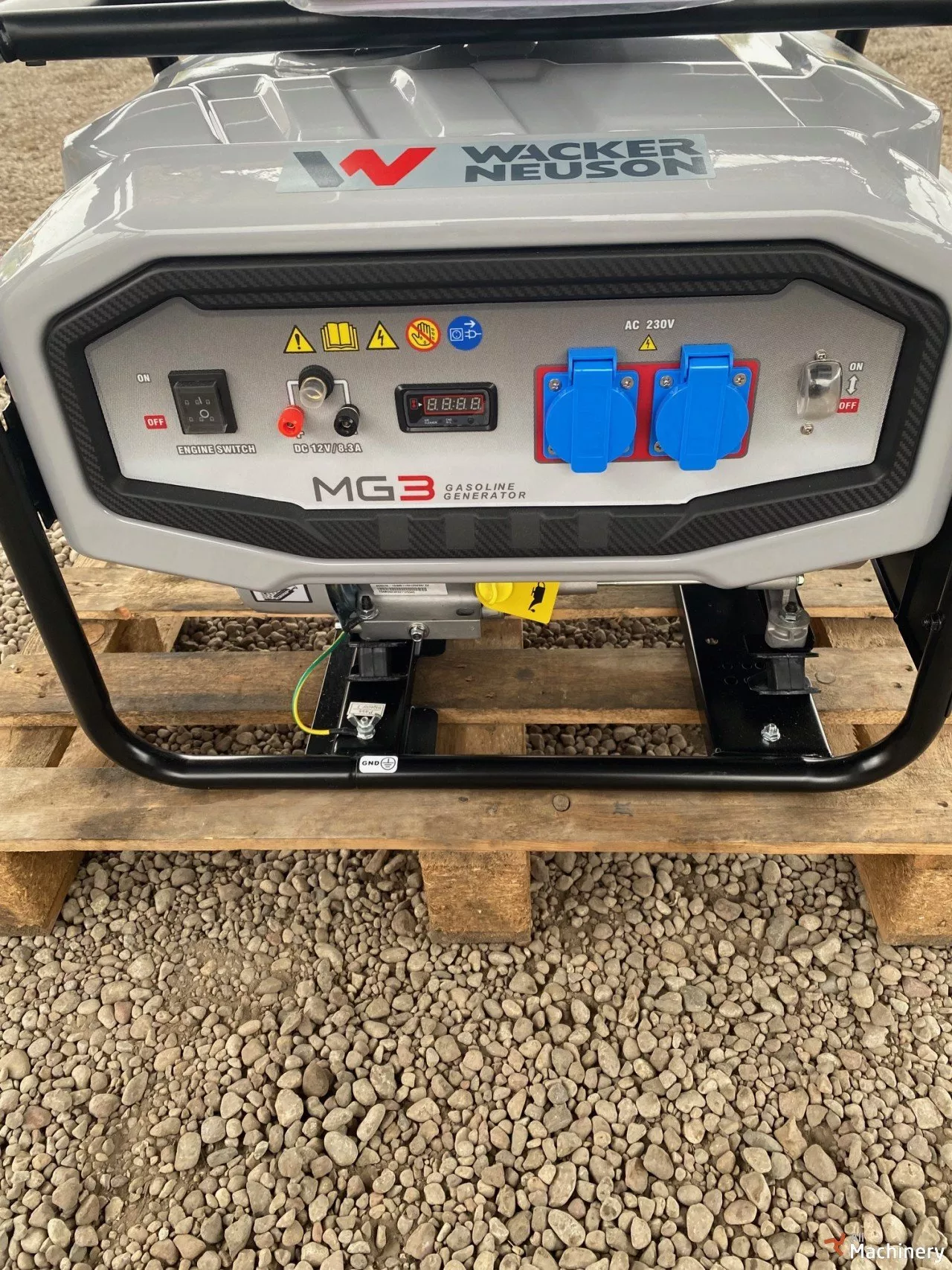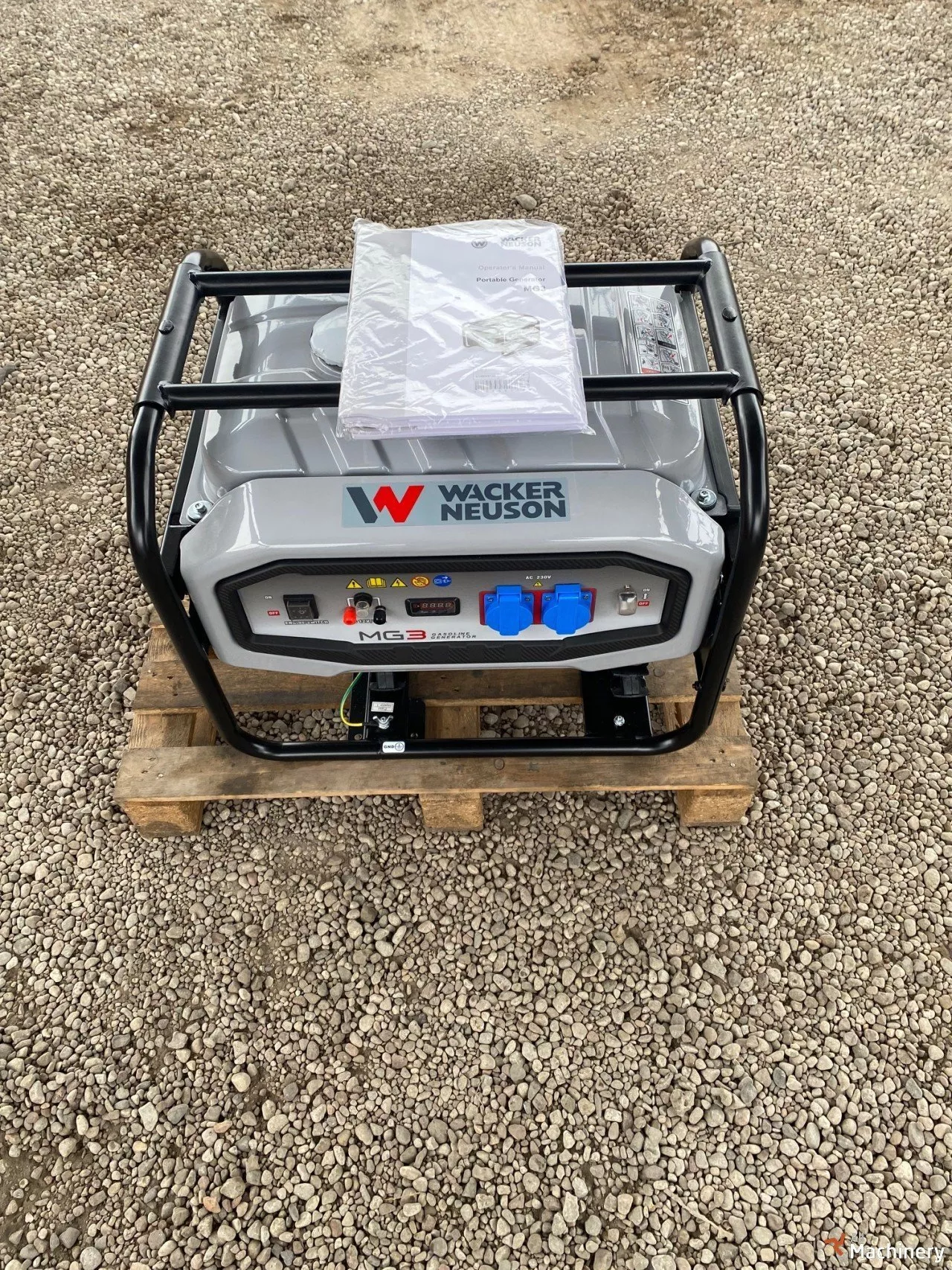Wacker Neuson MG3 benzininis generatorius Metai: 2023 Galia: 3 kW Darbinis svoris: 57 kg Gabaritai: 590 × 475 × 462 mm Variklis: Locin-G210FA, 212 cc, 4.4 kW Kuro bako talpa: 15 l Veikimo laikas: 7 h