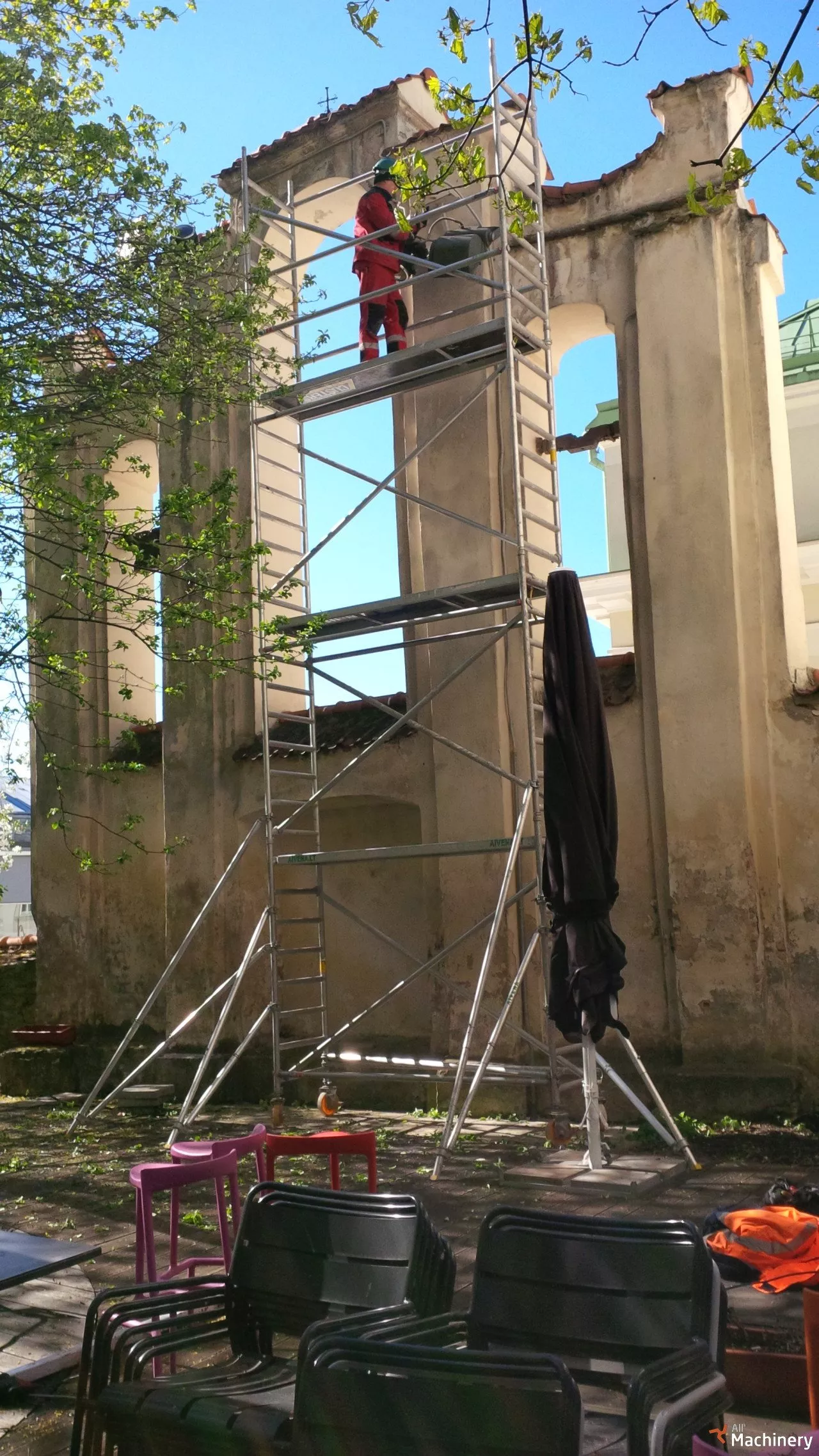 Mobilūs bokštiniai pastoliai, fasadiniai pastoliai, sulankstomi pastoliai, aviaciniai pastoliai ir kitos darbinės platformos.