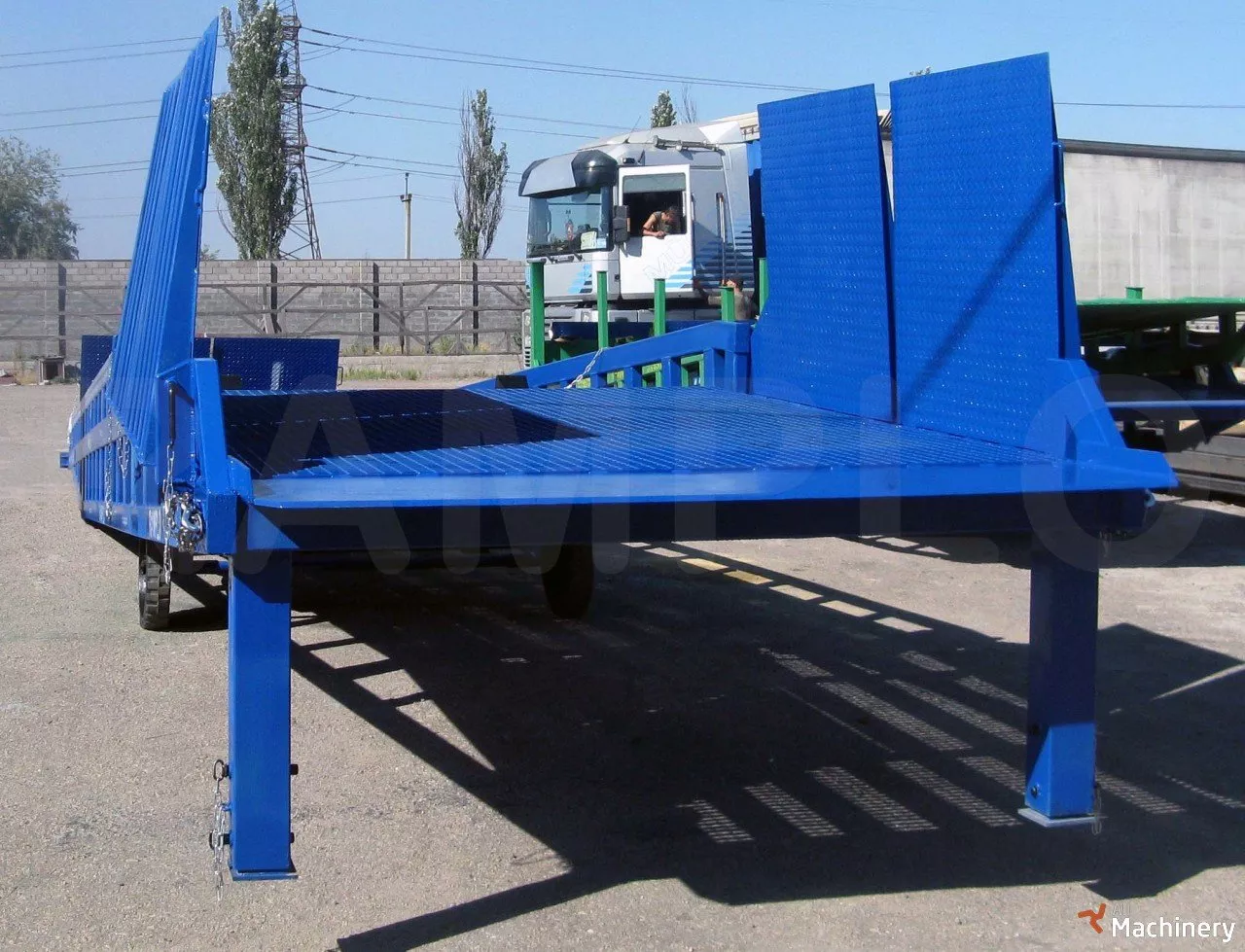 The mobile ramp RAMPLO is special equipment that allows a forklift to load and unload trucks, railway cars, driving inside it from the ground level. The mobile ramp works as a mobile bridge and can be adjustable in height. Due to its hydraulic system, the ramp serves as a link between the ground level and the level of a truck body, floor of a railway car.