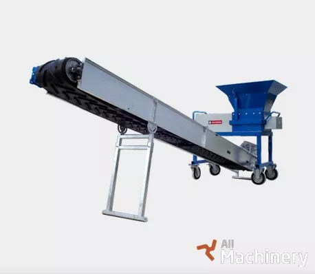 Rubber conveyor belt measuring 400 x 7 mm, running along rollers, standard lengths of 3 and 5 metres, folding in two parts complete with supporting legs, powered by 1 kw single-phase electric engine. Different measurements available on demand.