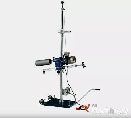 On frame for depths of up to 30 m, versatile with beam unit - able to turn through 360° horizontally/vertically for drilling in any position. Two advancement speeds with male and female screw, possibility of shoring up on ceiling by extending by a few metres, beam lifting winch, special fixture for mounting on scaffolding. PRCD 30 mA switch and transport wheels. Accessories: water collection conveyor, 50/80cm pillar extensions. - locking device for fixing pillar to scaffolding - beam lifting winch - beam fixture to scaffolding with 360° rotation.