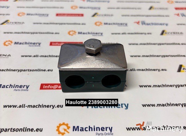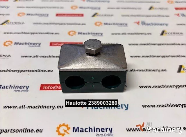 This Haulotte collar 2389003280 is commonly found in chassis and structural assemblies on Haulotte machines such as scissor lifts and similar aerial platforms, where a secure clamp/collar is needed to hold components or routing in place.