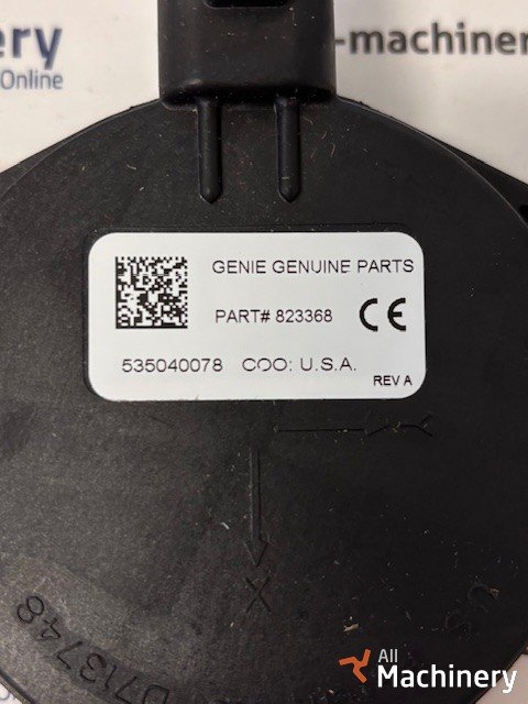 Original Genie part number 823368GT level sensor (also referenced as 823368) — a genuine Genie universal tilt/level sensor designed to monitor the machine’s angle and support safety and control functions on Genie aerial work platforms, scissor lifts, vertical mast lifts, and telescopic boom lifts. It detects the platform’s tilt or level position and feeds that information to the lift’s control system to help enforce safe operation, prevent unsafe tilting, and improve machine stability.