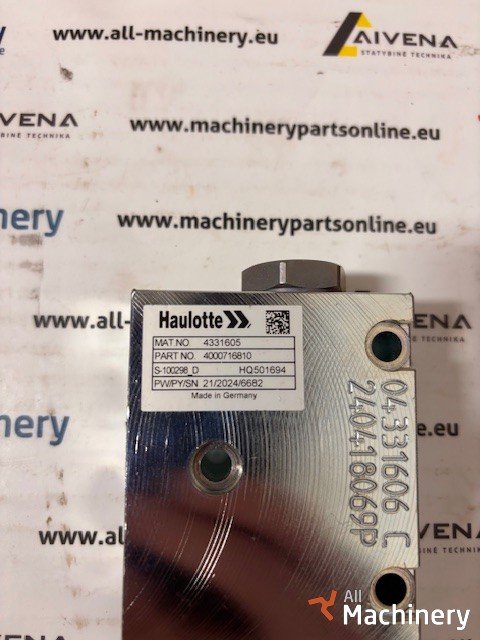 For sale: Haulotte 4000716810 hydraulic block, an OEM hydraulic manifold block used in Haulotte aerial work platforms. This hydraulic block distributes and controls hydraulic flow to lift, drive, steering, and boom functions, ensuring smooth and reliable machine operation.