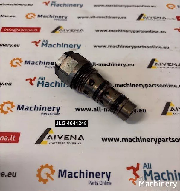 For sale: JLG part number 4641248 counterbalance valve, a genuine JLG hydraulic cartridge valve used for load-holding and controlled movement in hydraulic cylinders on aerial work platforms. This counterbalance valve helps hold loads safely and prevents uncontrolled cylinder descent due to gravity or external forces.