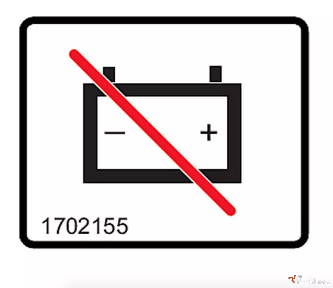 www.allmachinery.eu www.machinerypartsonline.eu Decall JLG 1702155 , battery disconnect Length L (mm) 64 Height H (mm) 50 Category of decal DASHBOARD Sub Type ELECTRICITY Description CROSSED BATTERY Foreground Colour MIXED Background Colour WHITE
